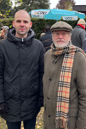 Die „besondere Bedeutung des Mauerfalls für Berlin“ hob Marvin Schulz, Vorsitzender der CDU Hermsdorf, hervor. Vom „glücklichsten Moment der jüngeren deutschen Geschichte“ an einem für Deutschland schicksalsträchtigen Datum, einem 9. November, sprach Glienickes CDU-Vorsitzender, Dr. Ulrich Strempel. Beide Ortsvereine wollten mit dieser Aktion auch die vielen Herausforderungen, zum Beispiel im Verkehrsbereich, unterstreichen, die Glienicke und Reinickendorf nur gemeinsam guten Lösungen zuführen können.