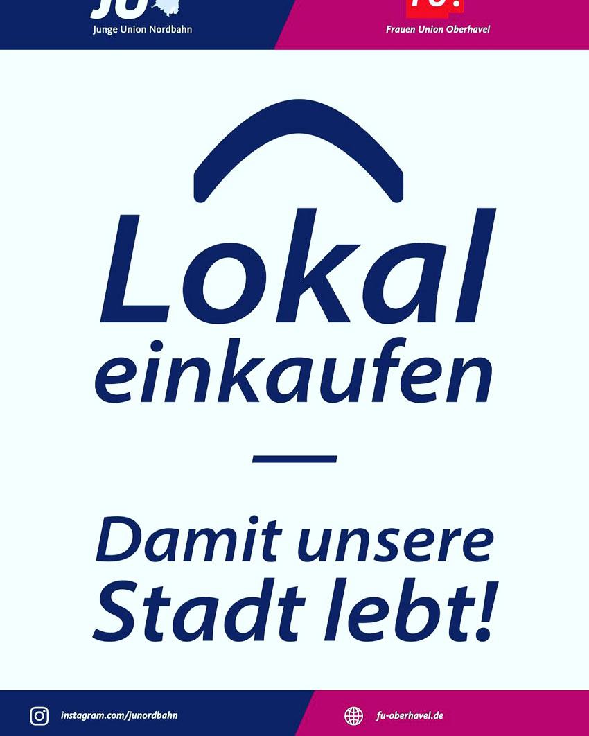 Daher unterstützen wir vom Ortsverband der CDU nachdrücklich die Aktion der Frauenunion und der Jungen Union in ganz Oberhavel: Mit ihrer Plakataktion unter dem Motto „Lokal einkaufen damit unsere Stadt lebt“ rufen sie – demnächst auch in Glienicke – dazu auf, zusammen zu halten und einander zu helfen.