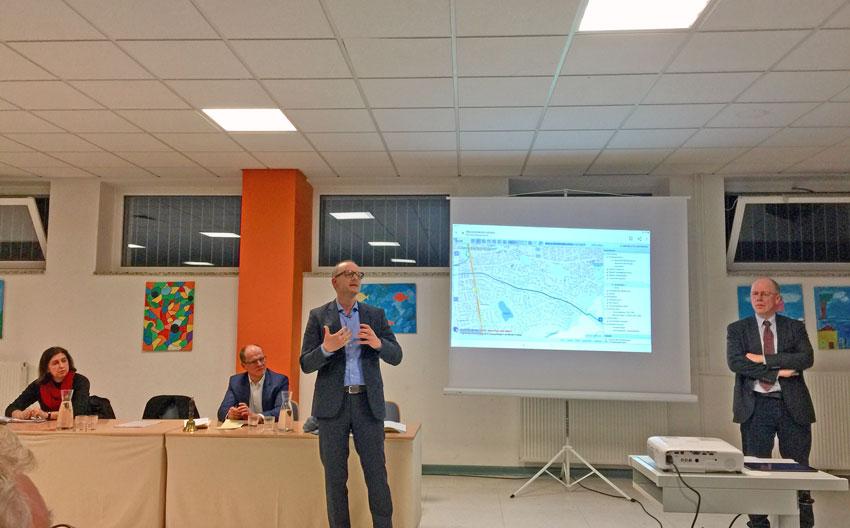 Erfreulich viele Glienickerinnen und Glienicker sowie einige Bewohner des Hermsdorfer Waldseeviertels folgten Bürgermeister Dr. Hans G. Oberlacks Einladung zur gestrigen Informationsveranstaltung über die mögliche Sperrung der Durchfahrtsmöglichkeiten an der Lessing-/Elsestrasse sowie der Alten Schildower. Oberlack legte die Sachlage dar und erläuterte erneut, was Glienicke bereits getan hat, um den ÖPNV attraktiver zu machen (u.a. Kiezbus). Sperrung sei für Glienicke 30 Jahre nach dem Mauerfall aber keine Option.